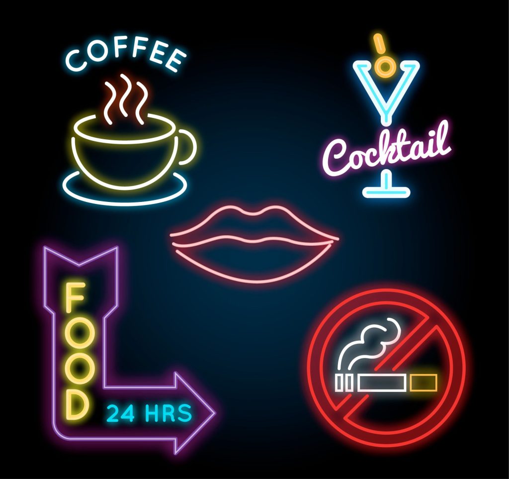 - Названия заведений в неоне